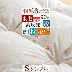 羽毛布団セット 羽毛 シングル 羽毛布団 【日時指定OK】組布団 6点セット ポーランド産羽毛布団 掛け布団 高反発マットレス 三つ折り 120N かため 厚さ80ミリ 枕 カバー付き 送料無料 布団セット 国内メーカー各社 ◎羽毛布団6点セット ●羽毛布団/47602 ■サイズ:シングル150×210cm ■詰め物:ポーランド産シルバーダックダウン90% フェザー10% ■詰め物量:1.2kg ■オゾン加工 ■ダウンパワー360 ■生地:ポリエステル85% 綿15% ■キルト:4×5マス立体キルト 中央増量 ■製品重量:約2.0kg ■日本製 ●敷き布団/47772 ■サイズ:シングル97×200×8cm ■厚み80ミリ ■表・裏生地:ポリエステル100% ■L字ファスナー ■硬さ:120ニュートン(かため)JIS K6400-2A法による ■詰めもの:ウレタンフォーム ■収納:三つ折れタイプ ■圧縮梱包(約26×97cm:円柱型) ■製品重量:約5.2kg ■日本製 ※中芯のウレタンフォームは洗えません。