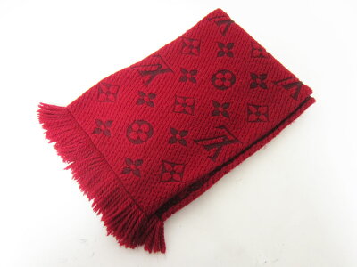 LOUIS VUITTON ルイヴィトン マフラー エシャルプ ロゴマニア ルビー レッド ウール シルク M72432 【中古】